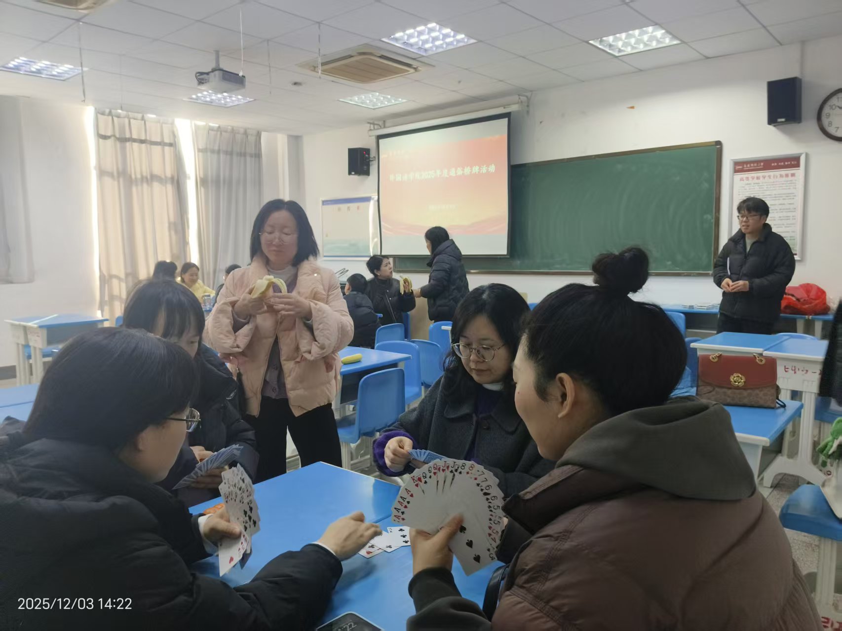 为丰富教职工业余文化生活,营造和谐融洽、团结协作的学院氛围,伟德victor1946分工会于2025年12月3日下午,在E419、421教室成功举办了2025年度通俗桥牌活动,全体教职工积极响应热情参与。