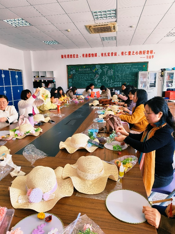 本次手工DIY活动精心准备了干花团扇和干花草帽等多样材料,兼顾审美与趣味。大家相互交流,沉浸式投入创作,现场氛围温馨热烈。参与的老师们纷纷表示,此次活动既放松了身心又增进了交流。
