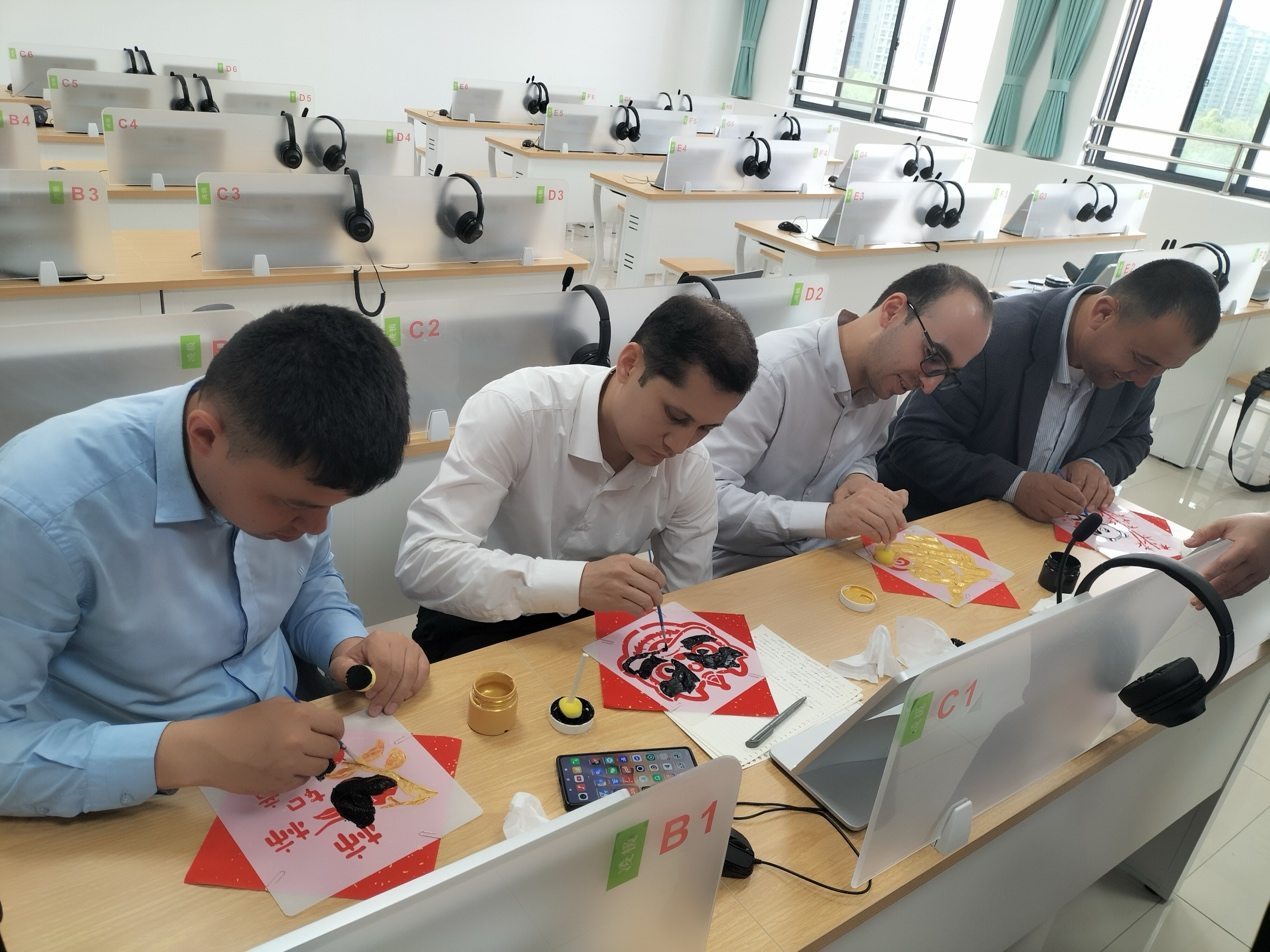 代表团应邀参加学院2025年外语文化节,观看剪纸、扎染作品等非物质文化遗产,感受中华文化魅力。