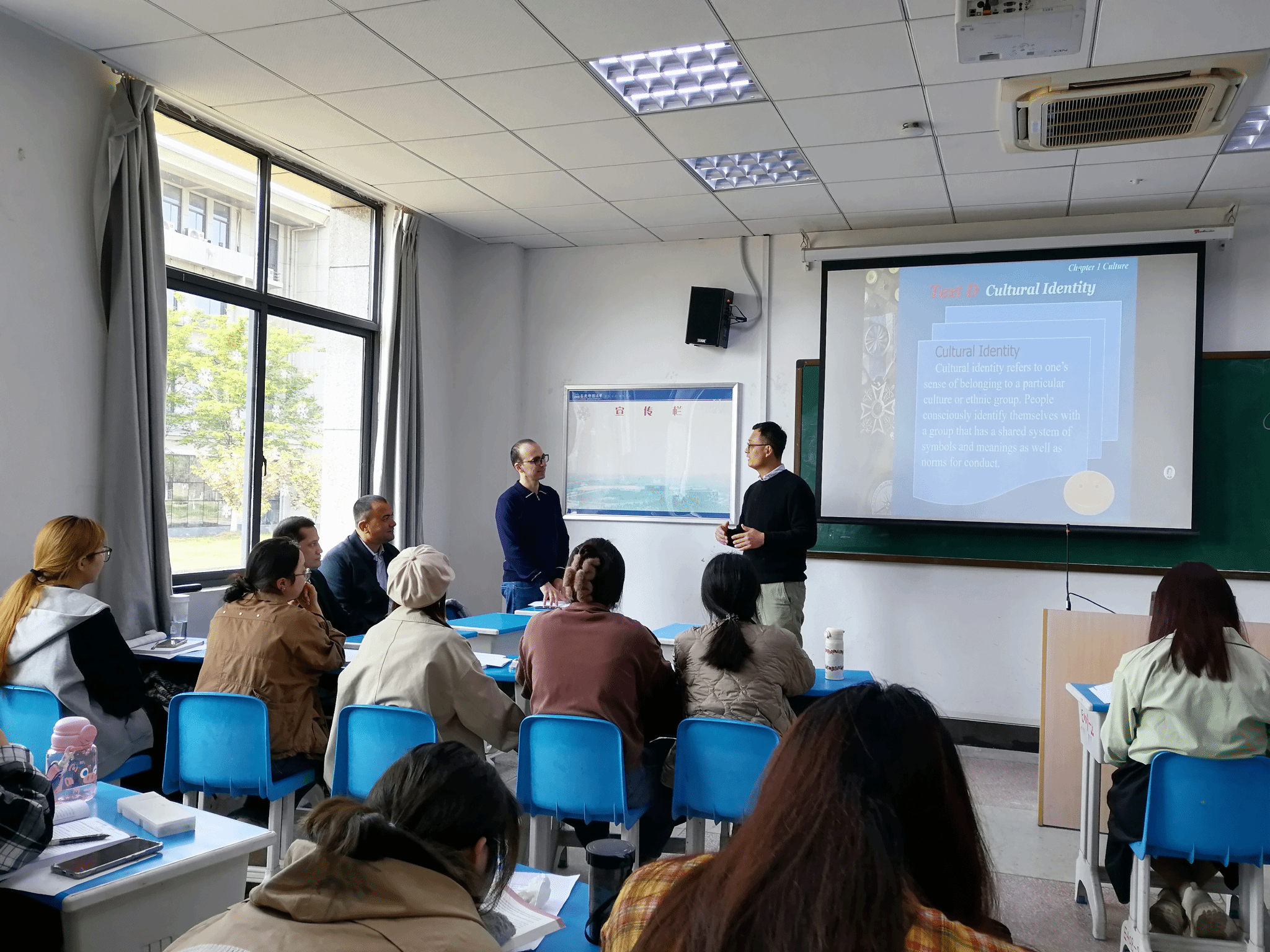 访问教师深入课堂,观摩“跨文化交际”“基础英语”“英语阅读”等课程教学,沉浸式体验创新教学,亲身参与课堂讨论等互动式教学。代表团对学院“翻转课堂”教学模式表示高度赞扬,并就“活动设计”“平台使用”等与授课教师展开探讨。