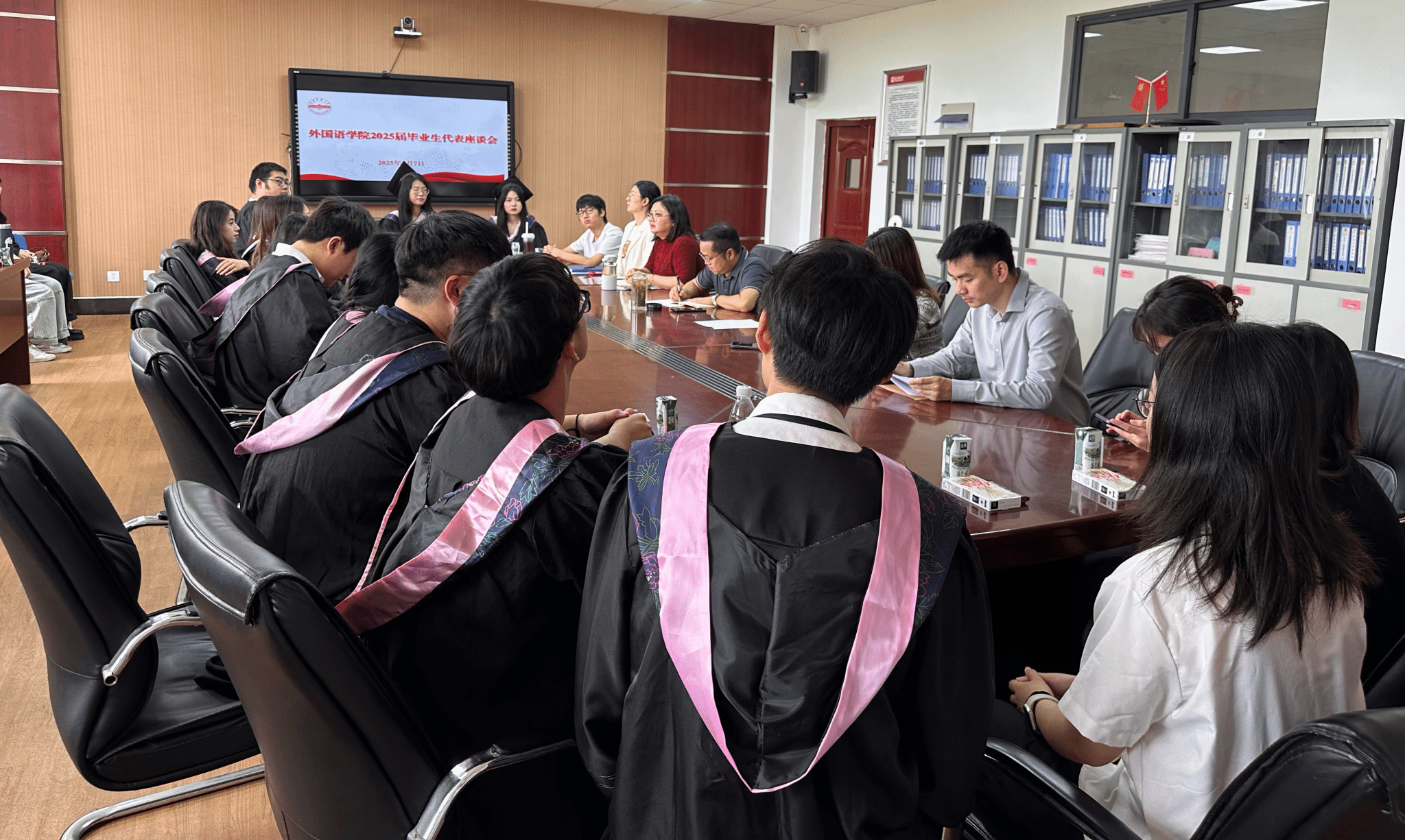 座谈会上,毕业生代表们踊跃发言,分享了各自的求职经历、考研心得以及对未来的规划。已成功就业的同学分享了求职过程中的宝贵经验,包括如何精准定位岗位、制作有吸引力的简历以及应对面试的技巧等,同学们还结合自身学习和实践经历,对学院的课程设置、实习安排、就业指导等方面提出了许多建设性的意见和建议,如希望增加实用性强的课程、提前开展实习指导、举办更多就业讲座和模拟面试活动等。