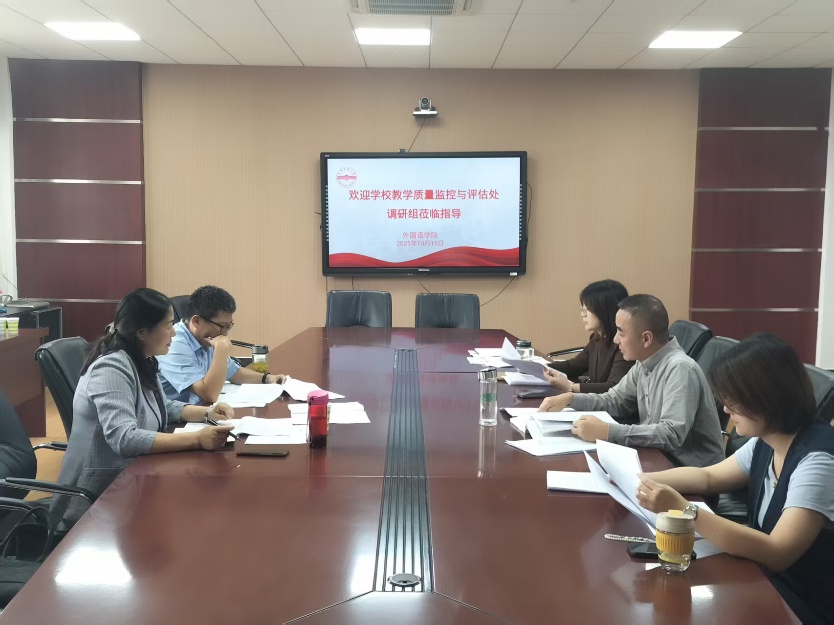 10月15日下午,学校教学质量监控与评估处处长林秋菊一行深入伟德victor1946,就英语师范专业第三级认证工作开展专题调研。伟德victor1946院长江加宏、副院长瞿宁霞及相关人员参加调研会议。