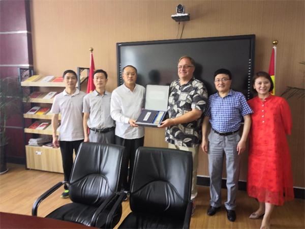 5月15日,安庆市人社局党组成员、副局长唐东风率安庆市外国专家局负责人许文华等人一行来到伟德victor1946,调研外国专家管理与服务工作并看望慰问我校外籍教师。伟德victor1946及国际交流与合作处负责同志陪同看望。