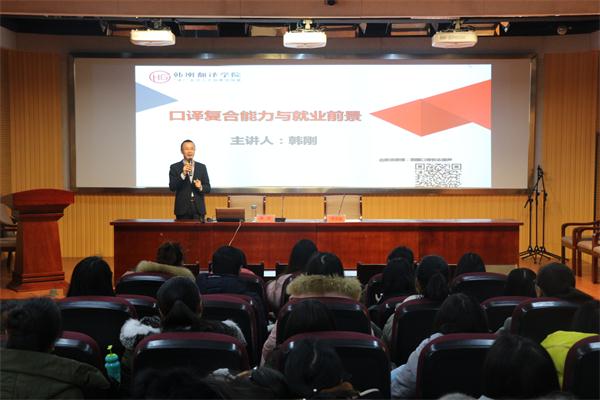 韩刚老师是韩刚翻译学院创始人,曾供职外交部新闻司,是国家外文局培训中心央企培训项目讲师,在口笔译培训领域享有较高声誉。此次讲座,是韩刚老师苏皖高校行的第五站,也是学院深化教学改革、推行“名师讲堂”的重要举措之一。(黄全灿)