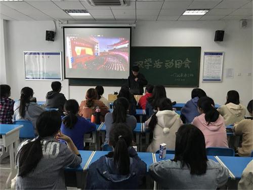 清明假期前夕的周三下午,很多学生都选择了归途,然而在伟德victor1946教室内传出诵读的声音——班级团支部书记带领团员开展“双学”活动,把学习宣传贯彻党的十九大精神与习近平新时代中国特色社会主义思想引向深入。