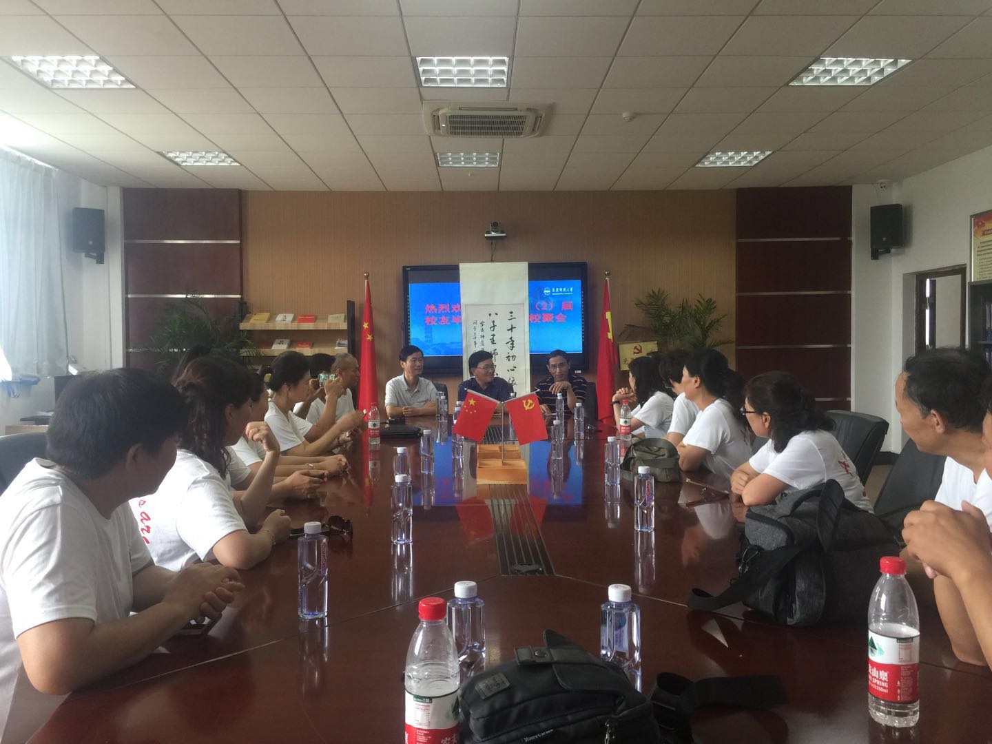 8月21日,伟德victor1946党政领导在会议室热情接待参加外语系88(2)届毕业三十周年返校聚会的校友。