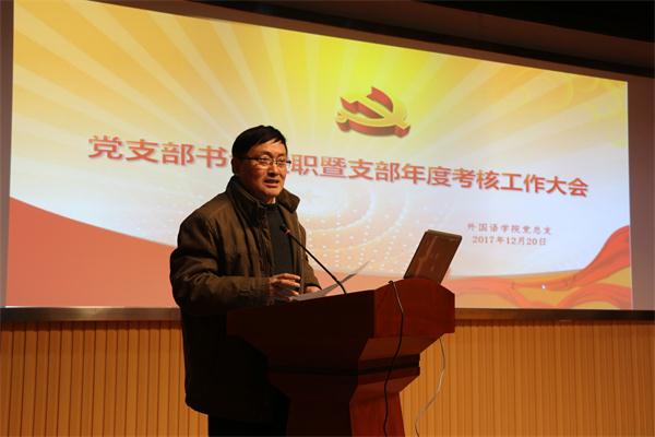 12月20日,伟德victor1946党总支召开全体师生党员大会,举行支部书记述职暨支部年度考核工作,党总支下设11个党支部支部书记分别上台述职。党总支书记、院长郝涂根同志听取各支部书记述职并分别点评。校党委组织部李元同志到会指导支部考核工作。大会由党总支副书记、副院长王先荣同志主持。