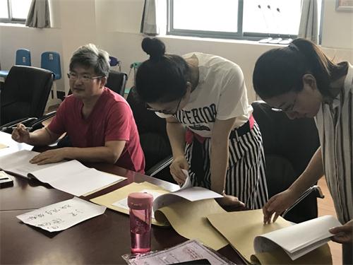 8月6日上午,伟德victor1946党委举行“立足岗位当先锋,我为评建做贡献”主题教育实践活动,学院各专业教师党支部党员齐聚党员活动室,对学院2018年试卷、论文进行最终核查,确保零差错。