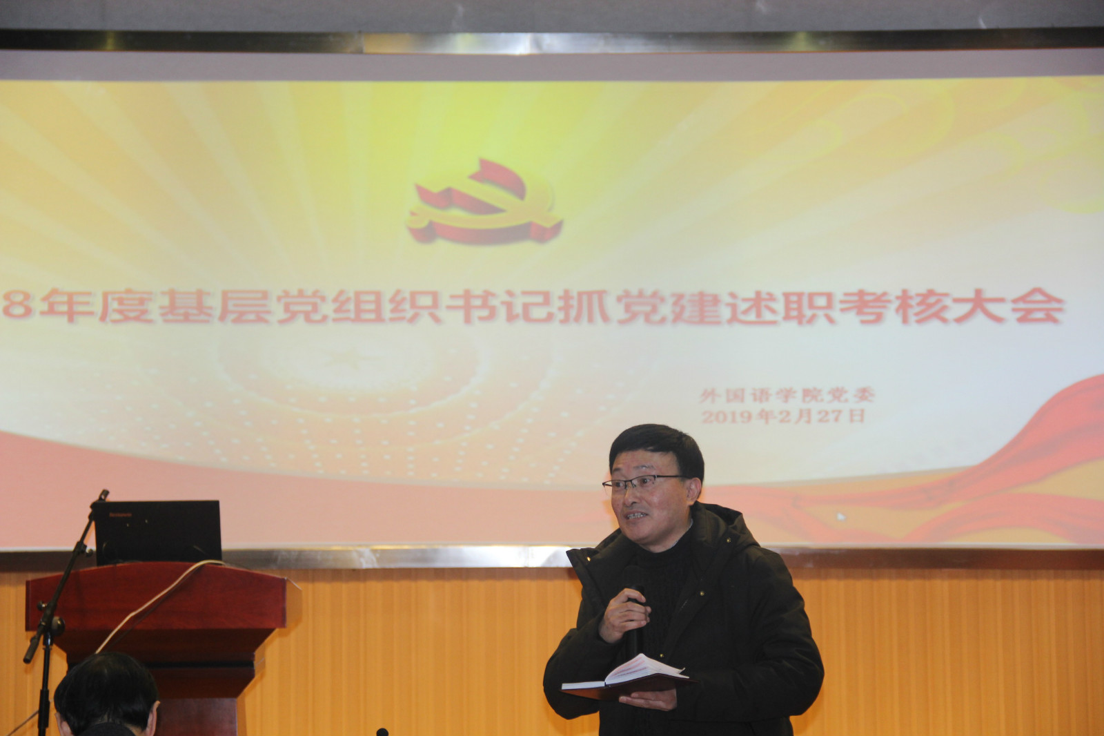 2月27日,伟德victor1946党委在E503会议室举行2018年度基层党组织书记抓党建述职大会,根据会前方案,来自学院5个学生党支部书记和6个教工党支部书记逐一上台展示汇报。党委书记郝涂根同志听取各支部书记述职并分别点评。