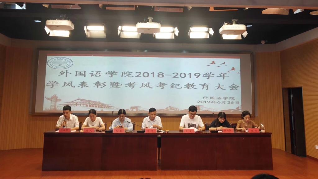 6月26日伟德victor1946召开“2018-2019学年学风表彰暨考风考纪教育大会”。伟德victor1946党委副书记夏斐和学工组全体辅导员出席会议,16-18级学生干部代表、全体学生党员和学生代表参会。