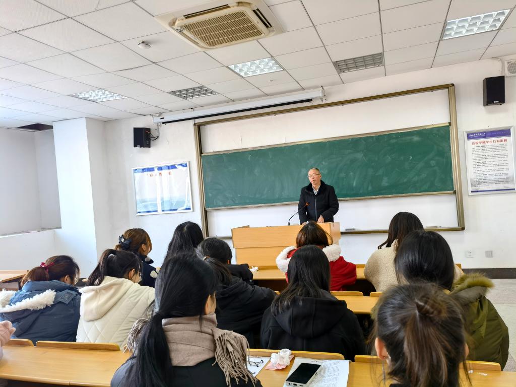 12月27日下午,学院党委书记李亦亮作学习贯彻十九届六中全会精神宣讲报告,翻译专业学生党支部党员聆听了宣讲报告。
