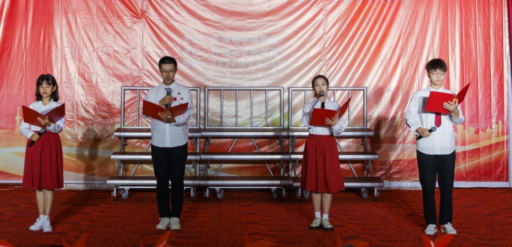 学院爵士舞团带来的开场舞《你最最最重要》“嗨”动全场,拉开此次合唱展演的序幕。外国语言文学类专业2022(11)班的合唱《少年中国说》气势磅礴,赢得阵阵掌声;法语专业2021级刘凯文演唱的新华流说唱《华夏》展现了当代青年心中的中国力量与精神;4名学生融入爱国情感改编的朗诵《以时代之眼,我们这样看中国》铿锵有力,道出了学生们的心声:“清澈的爱,只为中国!”……15个红歌合唱展演节目精彩绝伦,为新生们上了一堂“沉浸式”的党史教育课。
