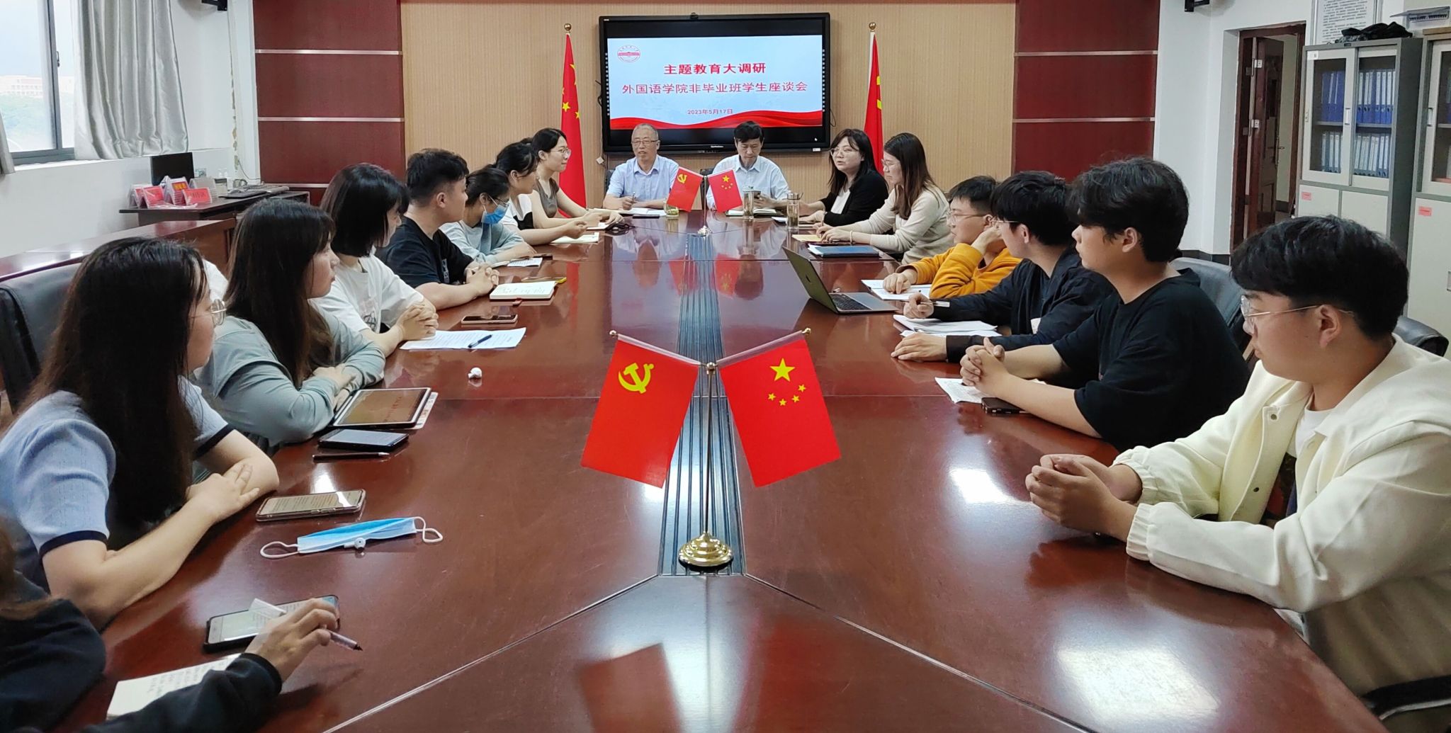 会议指出,希望各位非毕业班同学要全面贯彻主题教育的十二字总要求,将学习贯彻习近平新时代中国特色社会主义思想和党的二十大精神落实到日常行动中,珍惜在校时光,激发学习内驱动力,努力学习专业知识,广泛涉猎课外知识,提前了解就业市场,培养就业的核心竞争力,早日成长为符合社会需求的社会主义建设者和接班人。