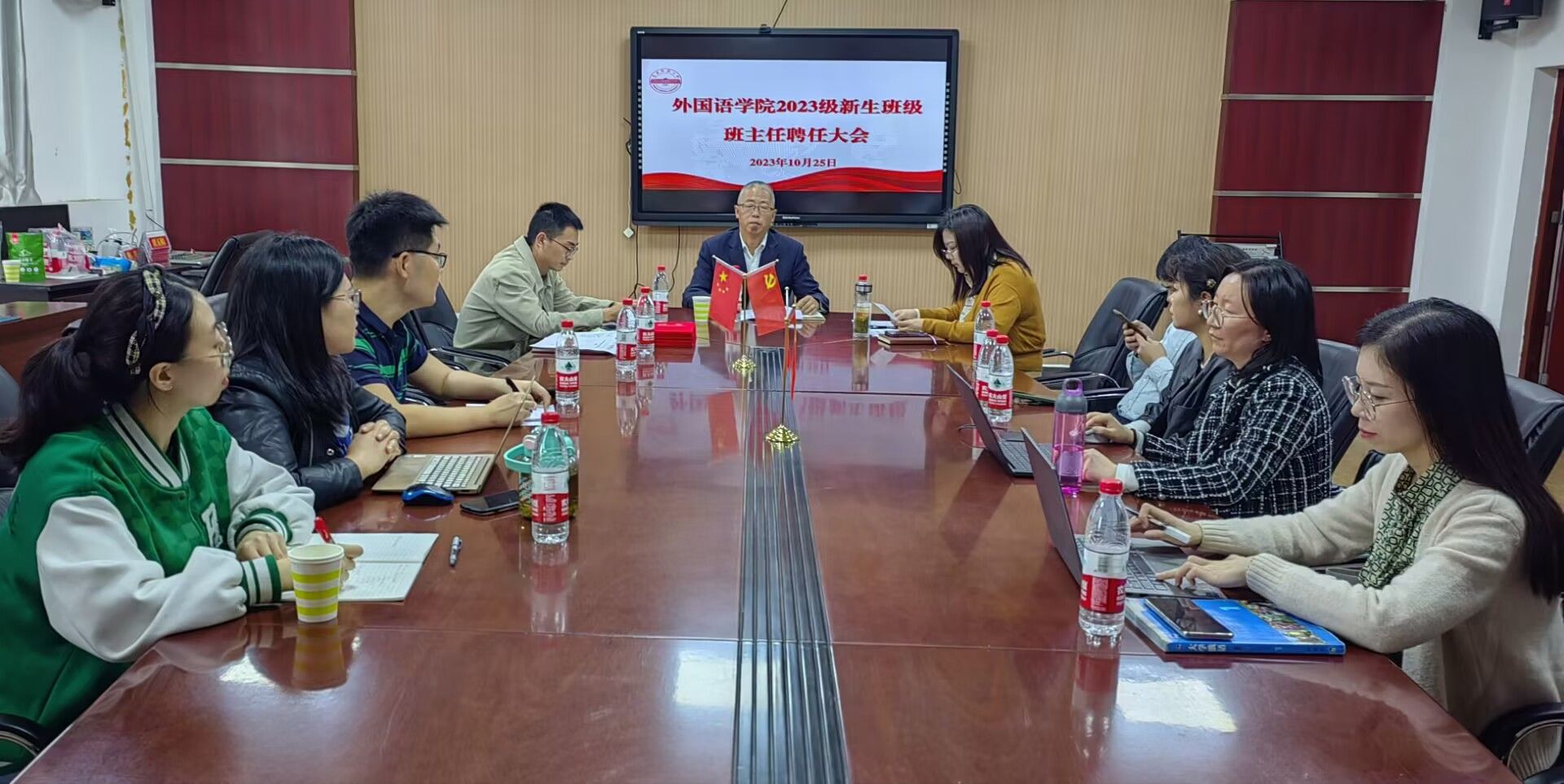 10月26日,伟德victor19462023级本科班班主任聘任大会于外语楼304会议室举行,学院党委书记李亦亮出席会议,新生班级全体辅导员和班主任参加会议,会议由学院党委副书记何媛君主持。