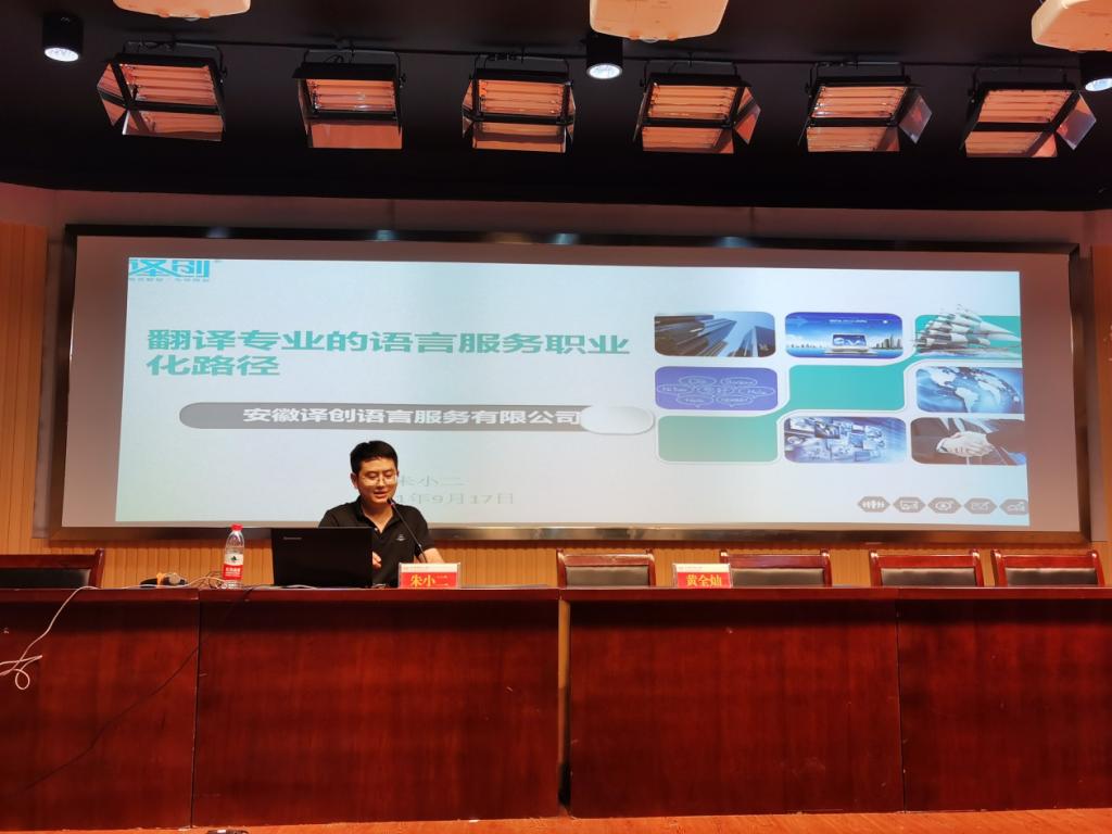 为了让我院翻译硕士2021级新生明确研究生阶段主要任务,及早做好学业规划与职业规划,积极投身职业实践与学术研究,伟德victor1946于9月17日下午14:30-16:30,在E503举办了题为“翻译专业的语言服务职业化路径”的行业讲座。本次讲座由伟德victor1946优秀校友、安徽译创语言服务有限公司、安徽高校语言服务联盟基地执行总监朱小二先生主讲,伟德victor19462020级、2021级翻译硕士专业学生、2018级翻译本科专业学生参加了报告会。报告会由我院副院长黄全灿主持。