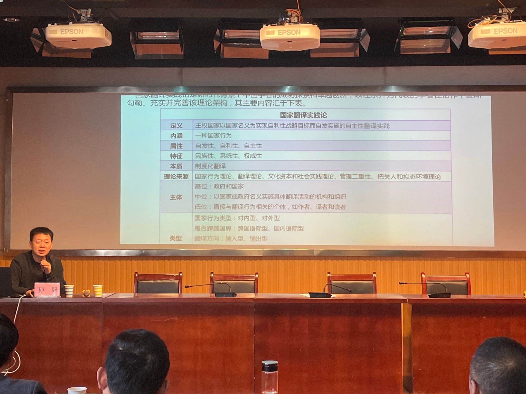3月29日,《广东外语外贸大学学报》主编,广东外语外贸大学云山杰出学者、博士生导师孙毅教授应邀做客伟德victor1946“望道讲坛”,作题为《国家翻译实践论视域下的隐喻英译管窥》学术讲座。讲座由院长王先荣教授主持,学院教师、硕士研究生及本科生100余人现场聆听了报告。