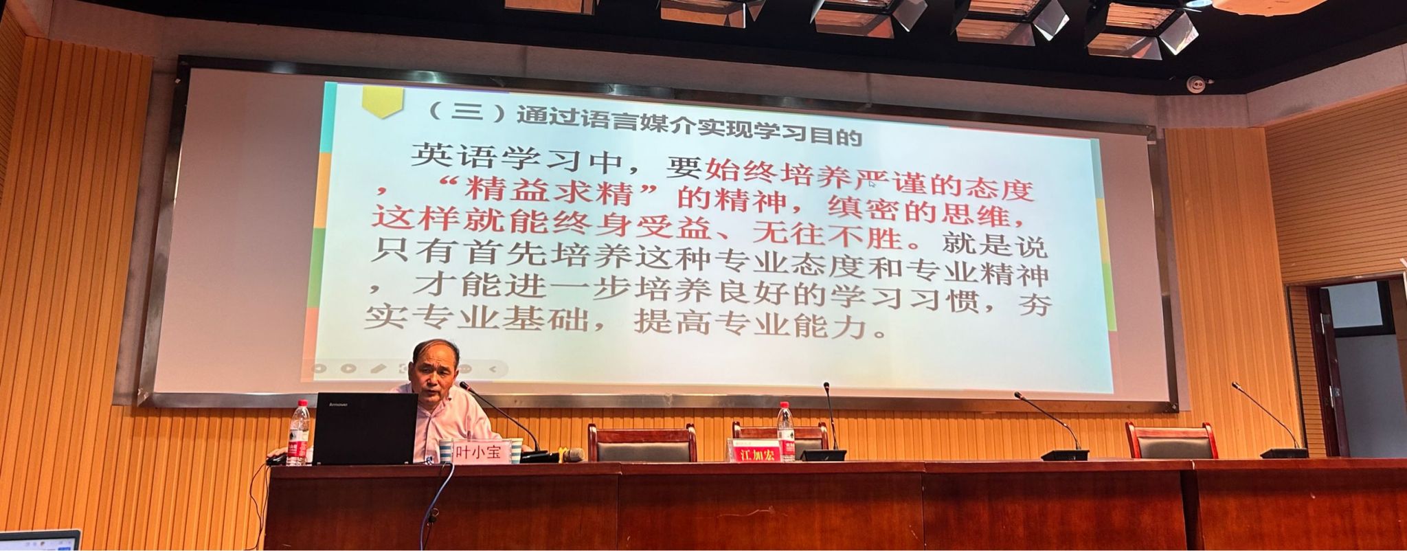 叶小宝教授凭借其深厚的教学功底和独特的研究视角,为在场的同学们呈现了一场内涵丰富、见解独到的英语学习讲座。讲座内容深入浅出,帮助同学们拓展了学习思路,提升了学术视野。在总结环节,江加宏勉励同学们要从优秀校友的典范中汲取力量,全心投入学习,实现全面发展,并深耕专业领域。