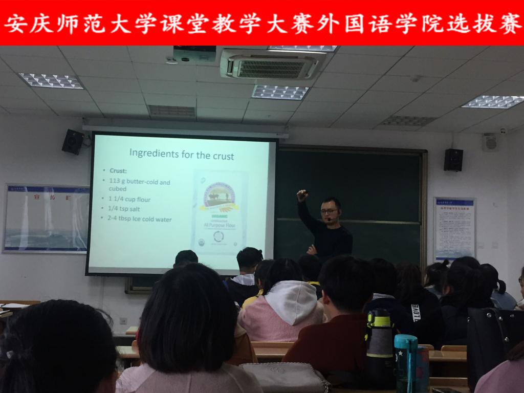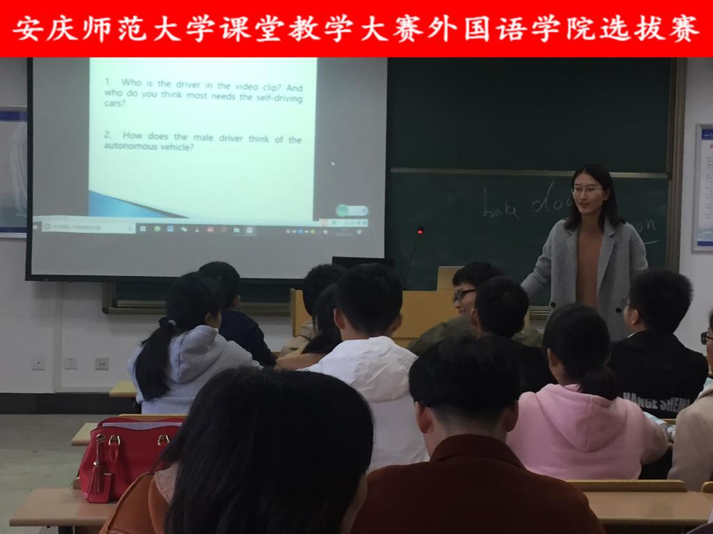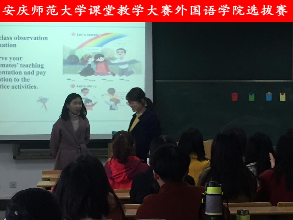 参赛教师就阅读技巧、课文导入、视听训练、口语交流、思维导图、互动式、讨论式课堂教学等内容进行了展示。各位选手精彩的课堂展示赢得了观摩教学的老师们阵阵掌声。领导和评委老师就各位选手的表现进行了精彩点评,并提出了建设性意见。