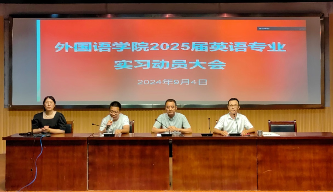 9月4日,伟德victor1946在E503召开了2025届英语专业实习动员大会。副院长江加宏、实习指导教师代表张少云、辅导员代表易惠、教学秘书江松强及英语专业2025届全体实习生参加了会议。