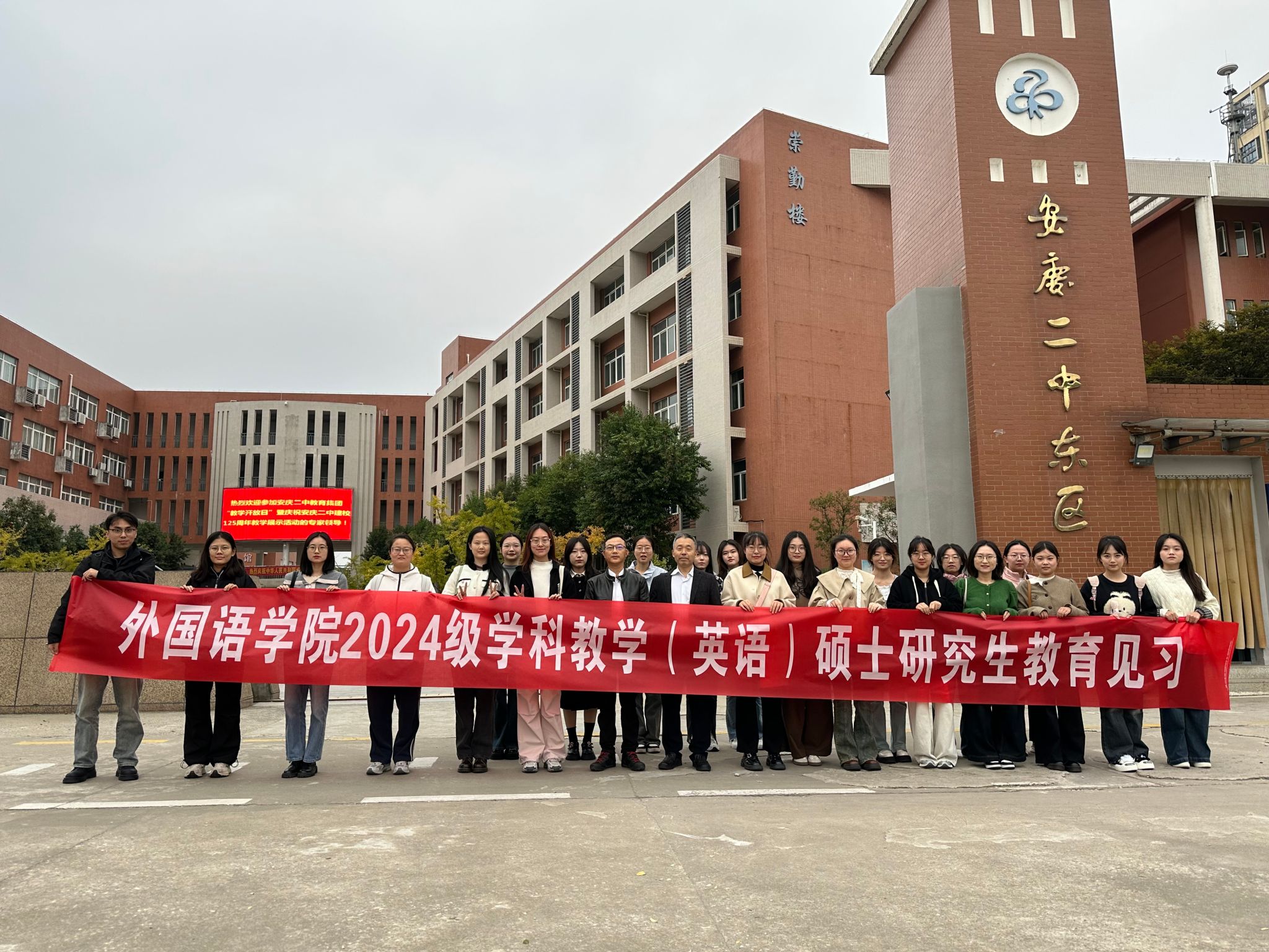11月5日,伟德victor1946组织学科教学(英语)专业研究生赴安庆二中东校区开展教育见习活动。教育见习指导教师及2024级学科教学(英语)全体研究生参加了此次活动。
