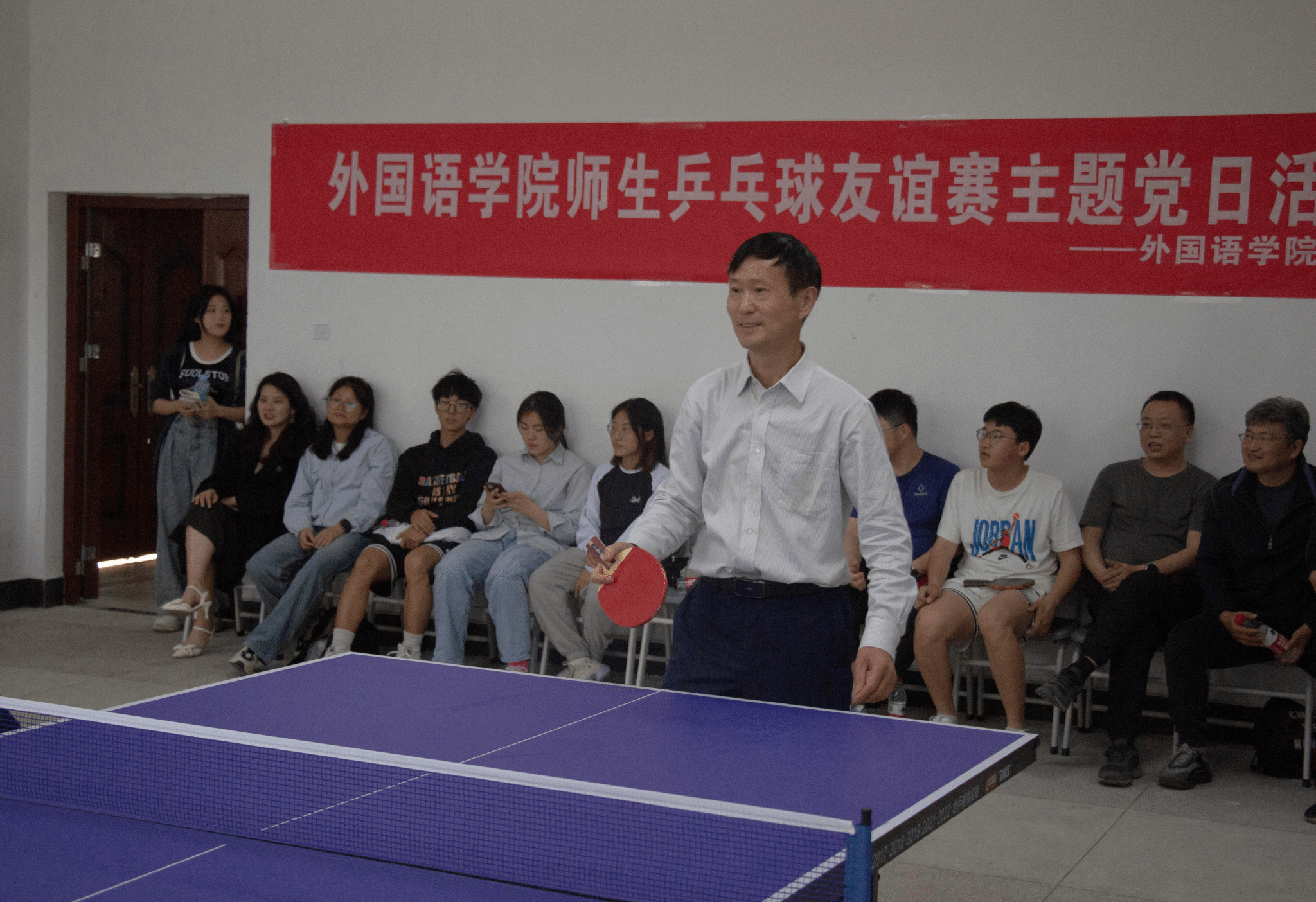 “好球!”“加油!注意防守!”……正值早春,伟德victor1946迎来师生乒乓球友谊赛主题党日活动。学院党政领导班子、教师代表与各级学生代表参赛。