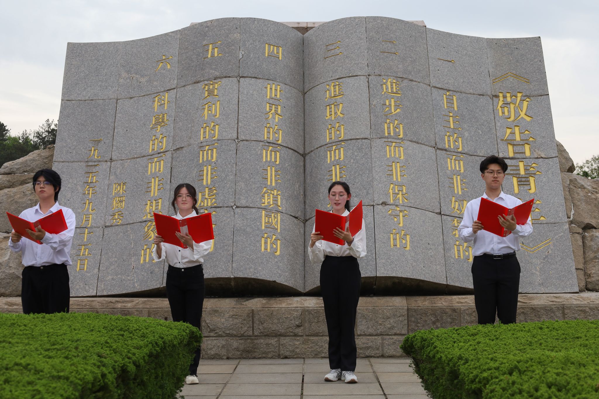 “青年之於社会,犹新鲜活泼细胞之在人身新陈代谢。陈腐朽败者,无时不在天然淘汰之途。与新鲜活泼者以空间之位置及时间之生命......”驻足在敬告青年的刻碑前,伟德victor1946学生代表通过《敬告青年》的朗诵声,将对青年的呼唤和期望传递给现场的每一名学子。
