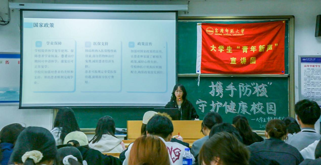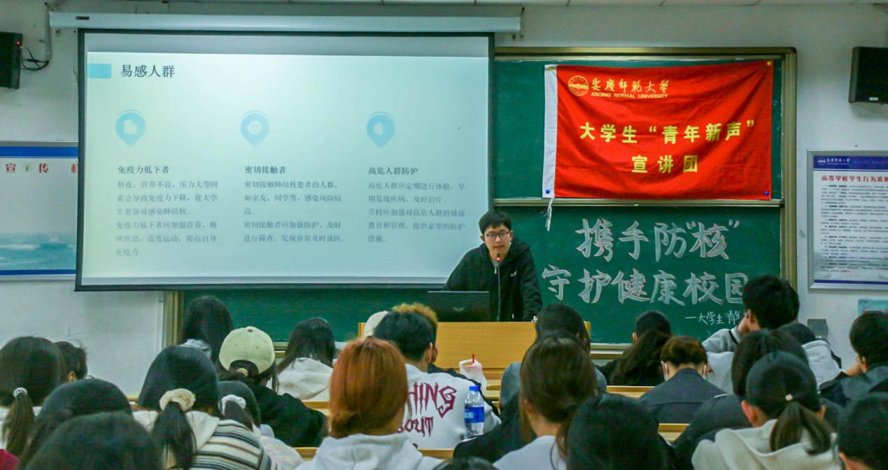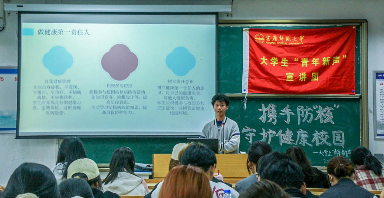 活动伊始,大学生“青年新声”宣讲团的晋宇飞通过生动的案例和详实的数据,向在场同学们介绍了肺结核的传播途径、常见症状及易感人群。他指出,科学认知肺结核,主动采取防控措施,是守护校园健康的关键,需加强宣传教育。