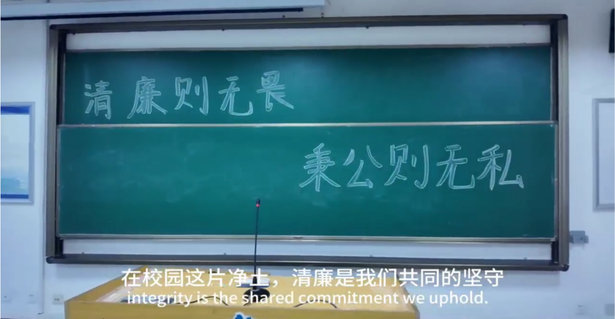 作为伟德victor1946的特色公益广告,作品充分发挥专业优势,采用中英双语呈现。团队精心打磨每一句台词,如将“清廉有畏”译为“Integrity with Reverence”,既准确传达核心价值,又体现文化特色。这种创新表达,让廉洁文化突破了语言界限,展现出更广阔的国际传播潜力。