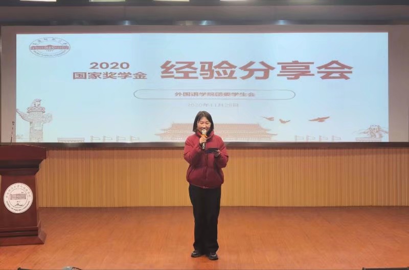 为帮助大一新生更好地适应大学生活,11月29日下午,伟德victor1946于E503举办2020年度国家奖学金获得者经验交流会。本次交流会邀请到2017级英语(合作)1班范文君和2018级英语1班詹海祥两位获奖者作为主讲嘉宾,2020级英语专业辅导员谢小雨老师及2020级近一百余人参加会议。