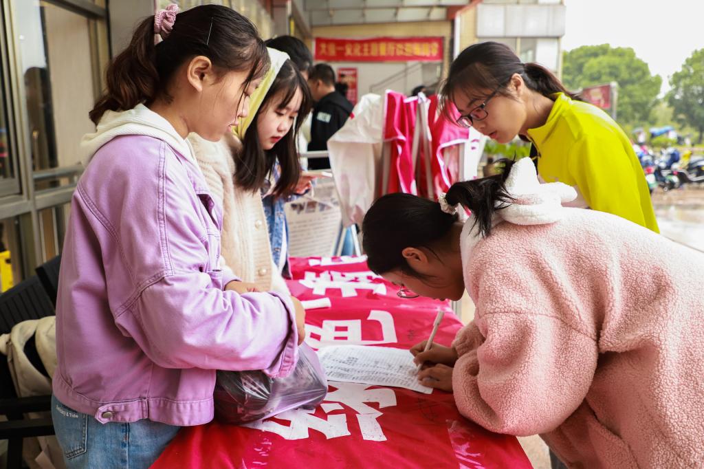 “这里可以捐衣服吗?”“请问军训服能捐吗?”“我现在回宿舍拿衣服来得及吗?”……捐衣摊点前不时传来各种询问,工作人员一一解答,并引导前来捐衣的学生进行登记。不一会儿,原本空荡的摊点便堆满了衣服、鞋子等用品。