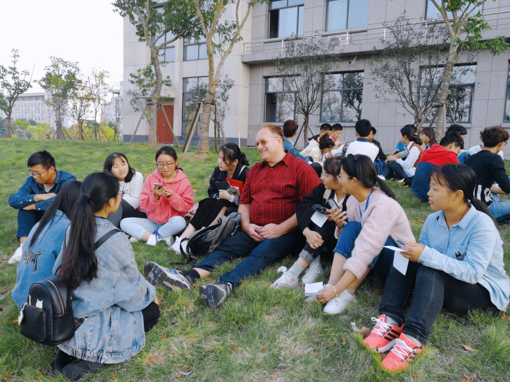 你尝试过在室外与别人用英语聊天吗?10月31日下午,大学生英语爱好者协会在伟德victor1946北门草坪上成功举办了户外英语角活动,来自不同学院不同专业的30余名同学和外教Dave共同参与了本次活动。