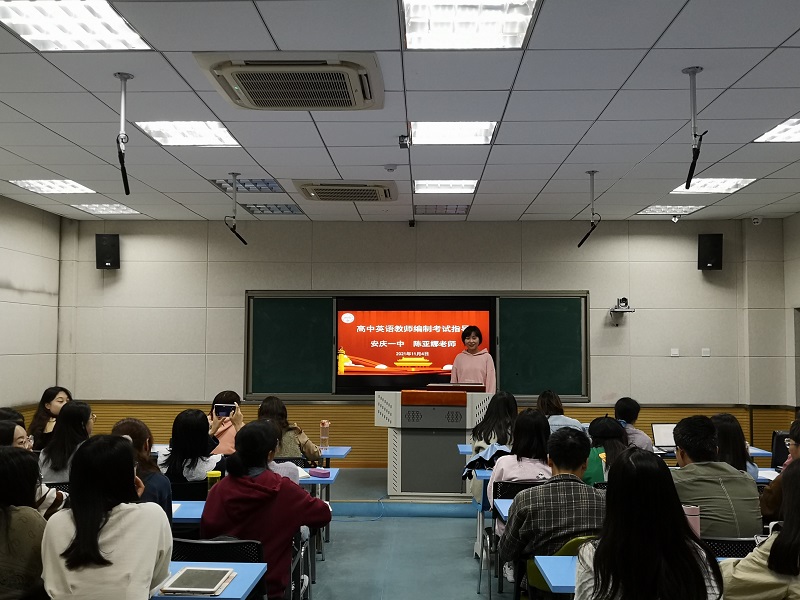 为应对当前不容乐观的就业形式,做好每位同学尤其是毕业生的就业工作,加强对研究生就业的指导与帮助,提升伟德victor1946研究生的就业意识,确定有效的职业发展目标,11月4日下午5:00,在我院E501举办高中英语教师编制考试指导,特邀安庆一中陈亚娜老师为同学们分享教师编制考试的成功经验。伟德victor1946全体毕业班研究生参加此次就业动员大会,全体2021级研究生新生到场倾听并做未来职业规划。
