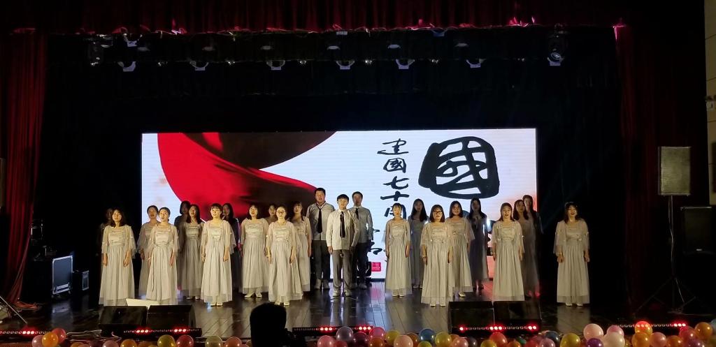 师生中英合唱《我和我的祖国》,悠扬的旋律中饱含了外院师生对祖国的热爱。演唱者之一、2016级翻译专业辅导员刘凡表示,这个节目很有意义,反映出了师生们的家国情怀,立体的展现了伟德victor1946师生风采和专业特色。