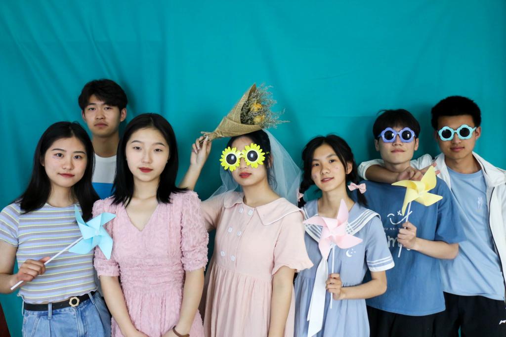 一袭纯白长裙,佩戴白色头纱,手持小风车,英语(师范)专业2020(4)班的黄玉尝试的是“梦幻风”,为了与头纱相配,她改变了平时的“JK风”,特意穿上室友送给她的“礼服”。互相帮忙装扮整理、不断变换拍照姿势、利用现场道具布设场景……为了拍摄出“美照”,黄玉与室友忙得不亦乐乎。