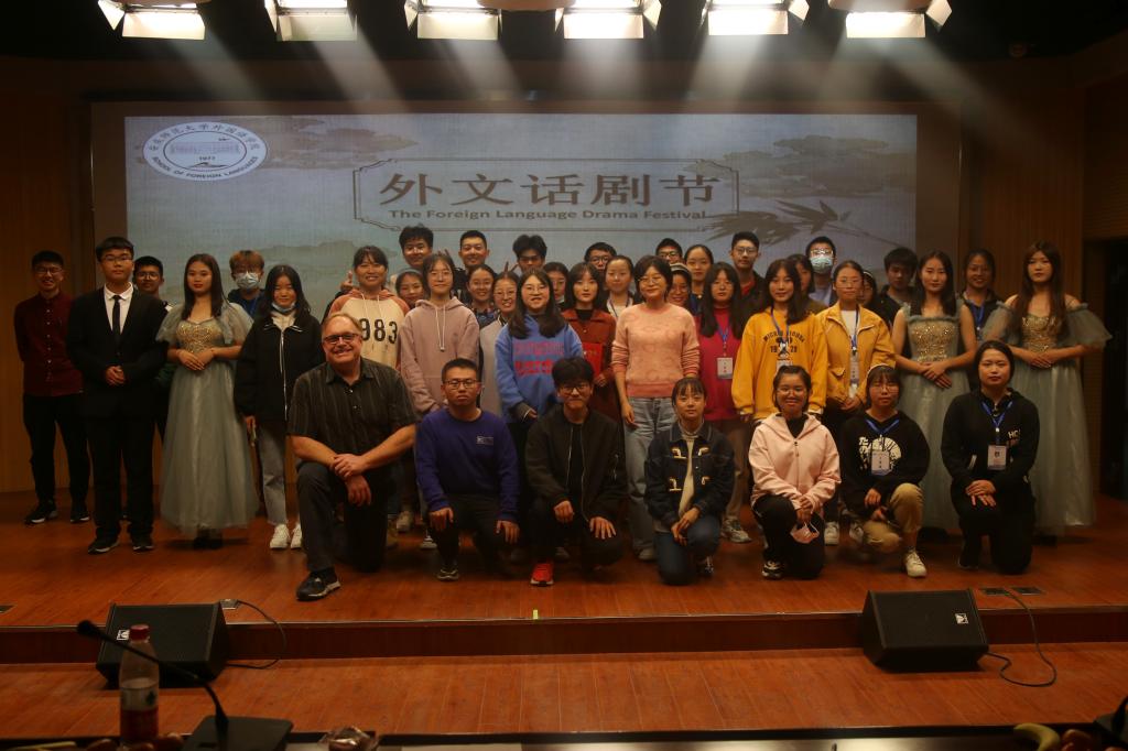 11月11日晚,伟德victor1946在E503教室举办第十一届外文话剧节决赛,学院党委书记郝涂根、院长王先荣、副院长江加宏、党委副书记夏斐、部分辅导员和外教Dave出席并应邀担任本次比赛的评委,伟德victor19462019级、2020级学生代表观看了汇演。