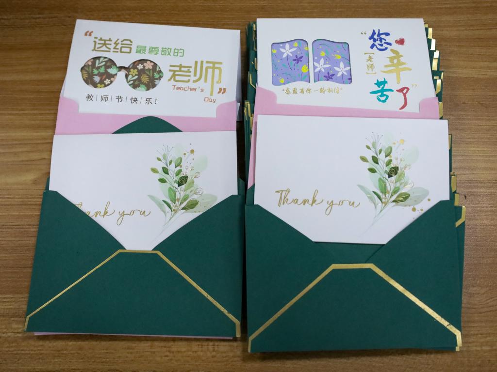 为了赶在教师节前夕为老师们送上精心准备的礼物,8位活动负责学生伴着4天的月光,将粉绿黄3种颜色的卡纸“变身”成功,确保50份“一盏花灯+一笺明信片”的完美组合能够在第一时间“准时配送”到老师们的手中。