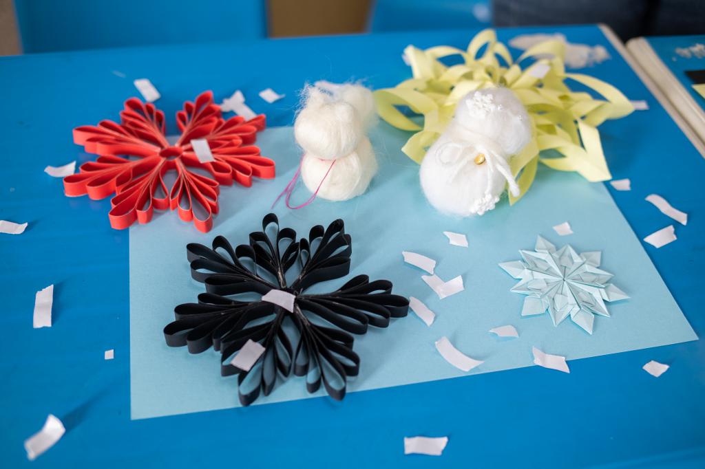 软纸雪花、卡纸雪花、编织雪花……馨语花艺俱乐部和子衿汉风俱乐部联合打造“制作雪花”项目,让学生体验不同雪花制作方式。