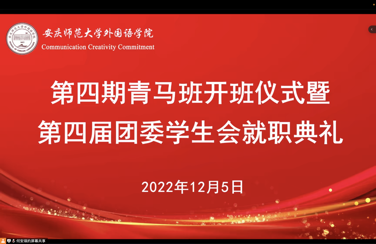 12月5日下午,伟德victor1946第四期青马班开班仪式暨第四届团委学生会就职典礼于线上举行。学院党委副书记何媛君、学工组全体教师及学生骨干参会,会议由学院团委负责人主持。