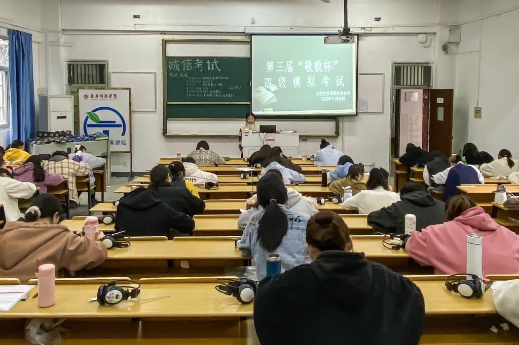 “这次模拟考试听力很棒!”“梦回高三英语测试!”“什么时候能出成绩?”……近日,bevictor伟德国际1946大学生英语爱好者协会举办英语四级模拟考试,分别在龙山校区、菱湖校区设置考场,全校2021级和2022级400余名学生报名参加。