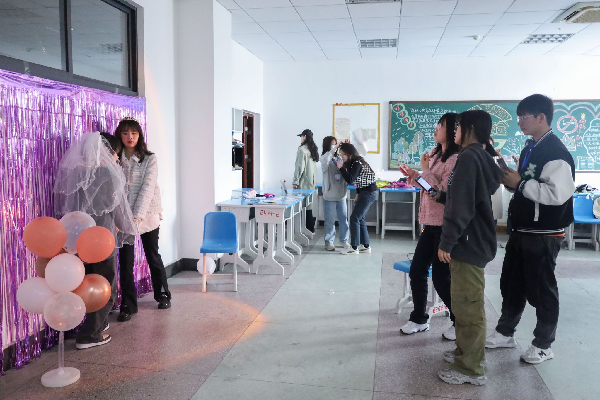 编发化妆、穿戴饰品、指导姿势、拍摄照片……活动现场热闹非凡,技术高超、手艺精湛的志愿者们分散在各个角落为前来参加活动的学生们热情服务。日落灯、礼花枪、搞怪眼镜等拍摄“神器”氛围感十足,颇受女生们的青睐。学生们手拿道具站在各式各样的布景前,经过志愿者们的精心指导,一张张风格多样的美照“新鲜出炉”。