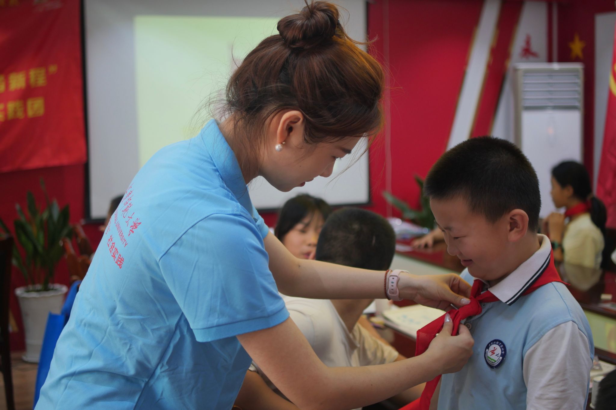 搜集资料、练习诵读、准备课件……为了给孩子们更好的课程体验,外国语言文学类专业2022(11)班的王启昕在上课前的五分钟还在紧张地练习。她表示,为了之后的朗诵能够更加完美,她还特地学习了有关朗诵方面的技巧知识。“孩子们在课堂上积极地发言,实在是很让我惊喜。”