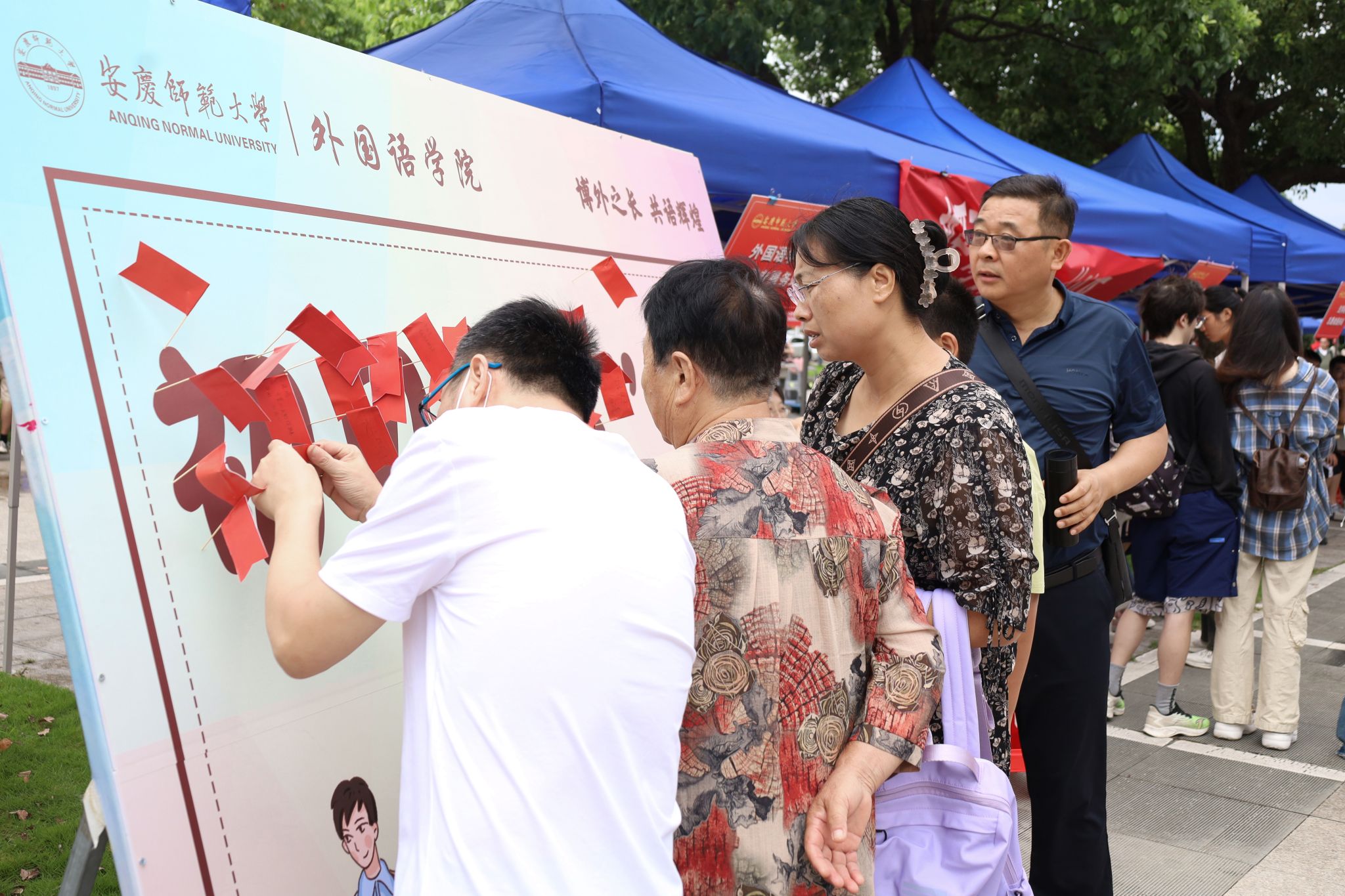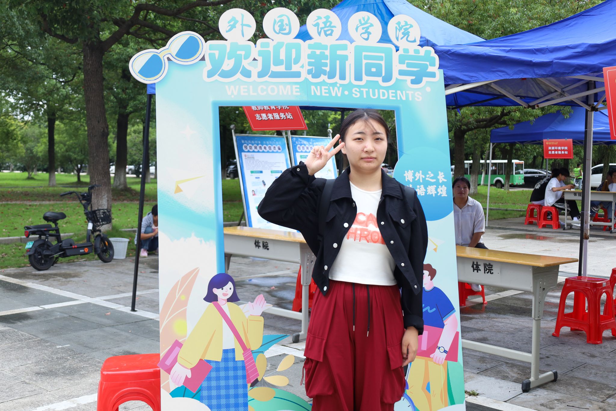 “希望我在大学中能够尝试更多新事物,拥有更多新的人生经历。”法语专业2023级的孙雪思索良久,将自己今天报到的心情写在了红旗上。在她看来,插旗打卡活动既新颖又别致,她在参与活动中感受到了外院的迎新热情。”孙雪表示,对接她的志愿者学姐温柔大方,一路为她讲解校园风景,消除了她初到一个陌生环境的不安。