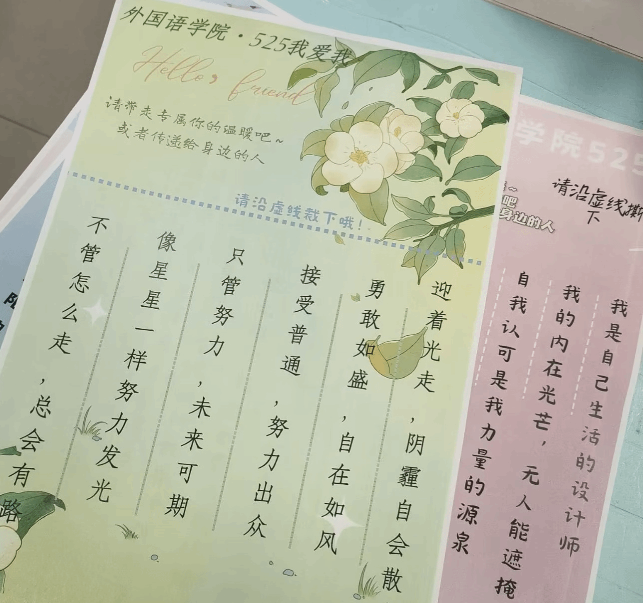 语言不仅是沟通的工具,更是抚慰心灵的良药,5月23日,伟德victor1946举办“心晴便签”传递活动,学院每层楼道和部分学生公寓楼宇最显眼的墙上都贴着“力量语录”,每张便签上都写着富有激励意义的话语,学生们通过撕下善意的话语得到鼓励,拥抱美好的学习与生活。