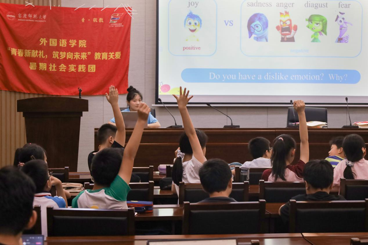将情绪类英语单词与动画电影《头脑特工队》结合,在“英语识‘情’,趣味横生”课堂上,外国语言文学类专业2023(7)班的曹心怡以情绪为主题,带领学生们体验趣味英语。“了解不同情绪的表达方式可以帮助学生更好地理解他人感受,且通过趣味英语的方式直观表达单词意思也能极大程度地吸引学生的学习兴趣。”曹心怡表示,将情绪类英语单词与动画角色相对应,创新学习方式,希望为学生带来丰富且有趣的学习体验。