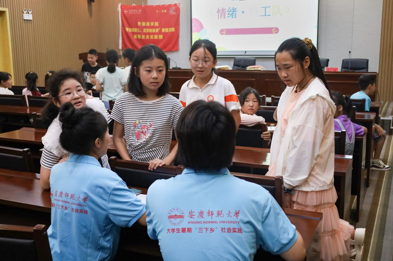 “从地域特点到人文景观、语言文化,我们针对学生年龄段特征设置了特色课程,向他们普及世界文化及语言知识。”实践团成员、外国语言文学类专业2023(7)班的刘璇介绍。近日,伟德victor1946“青春新献礼,筑梦向未来”教育关爱实践团走进怀宁县“青年之家·红领巾”学堂,携手小学生开展“领略文化交融,深悟语言魅力”主题课程,带领他们游世界国家,探文化风情。